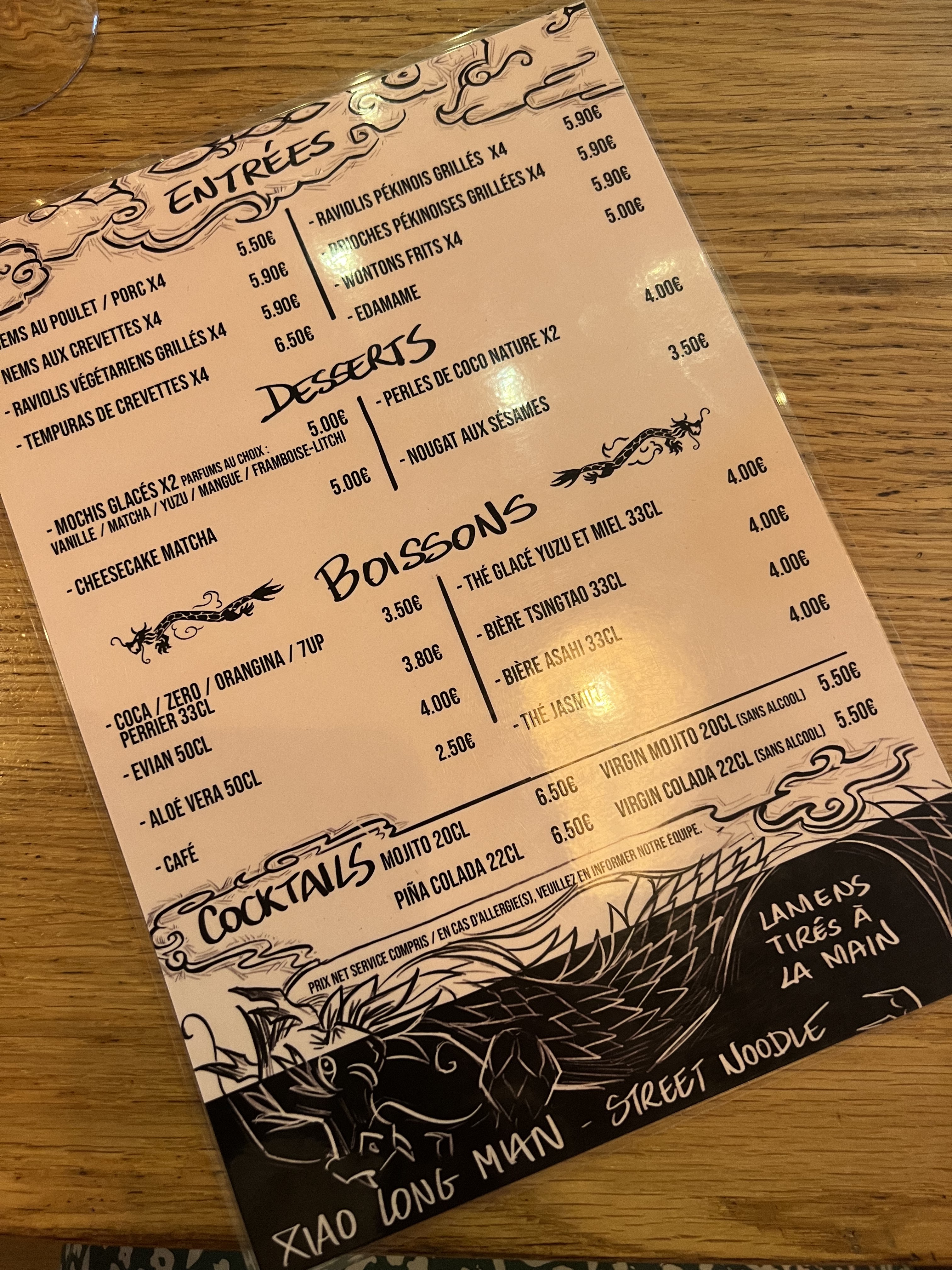 Petite adresse sympa pour manger de la nourriture chinoise proche de St Michel Notre Dame. Les saveurs auraient pu être plus prononcées et percutantes mais c’est frais et fait maison. Tarifs dans la norme du quartier.